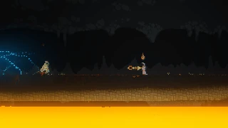 - Death Cross has a homing component not mentioned in its description which only targets creatures with the "prey" tag - i.e. passive creatures, such as the fish found in each Holy Mountain.